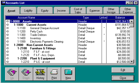 Detail accounts are postable ie you can use them in General Journal entries.Account Classification : This tells you what type of account you are creating. It is filled in by M.Y.O.B.