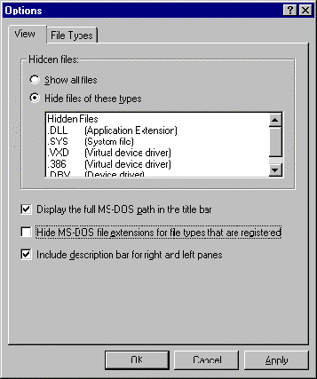- De-select this option. Click on Apply and then OK. Notice the difference in the Windows Explorer window.