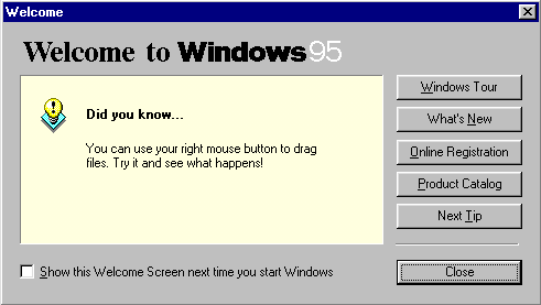 - Click on the Close button. The Welcome window will disappear. It will not appear the next time you start your computer.