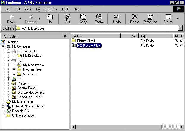 - Type in the new file or folder name. The new name for the M-Z Picture Files folder is Picture Files II.