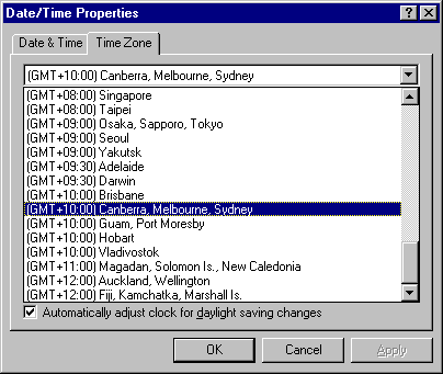 - Select the time zone for Brisbane. Notice that the option to adjust for daylight saving is not available to you. This is because Queensland does not have daylight savings time.