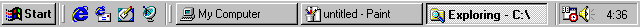 - Open My Computer, Windows Explorer and the Paint program in the Accessories menu. Your task bar will look like the one below.