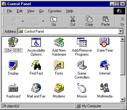 - Select Start/Settings/Control Panel. The control panel window will appear on your desktop.