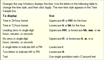 Changing the Time Display on the Taskbar This is where you decide how you want the time displayed in the clock on the task bar.