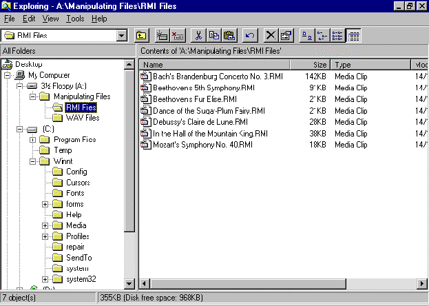 - Select Edit/Paste. The file Mozart's Symphony No 40.RMI will be moved to the folder RMI Files.