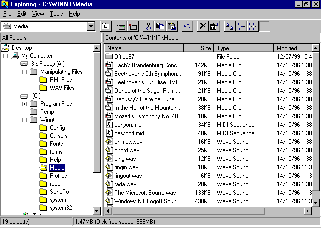 - Select the file(s) you want to move. We will move all the RMI files. Click on Bach's Brandenburg Concerto No. 3.RMI, hold down the shift key, and click on Mozart's Symphony No 40.RMI. All the RMI files should be blue.